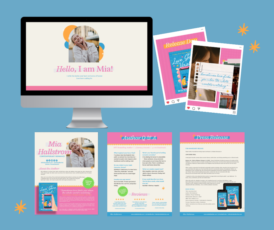 Categories: All Social Media Press Kit Canva Websites All / Quick View BUNDLE + SAVE: Romance Author Marketing Pack $68.00 Quick View Romance Author Canva Press Kit $15.00
